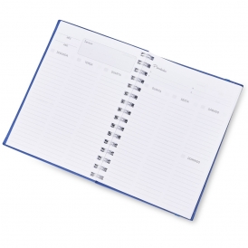 Descrição: Caderno planner feito em capa cartonada com elástico para lacre. Com aproximadamente 62 folhas, o planner possui página para dados pessoais, calendários 2024 e 2025, planejamento anual, objetivos e metas, controle financeiro e resoluções do ano.