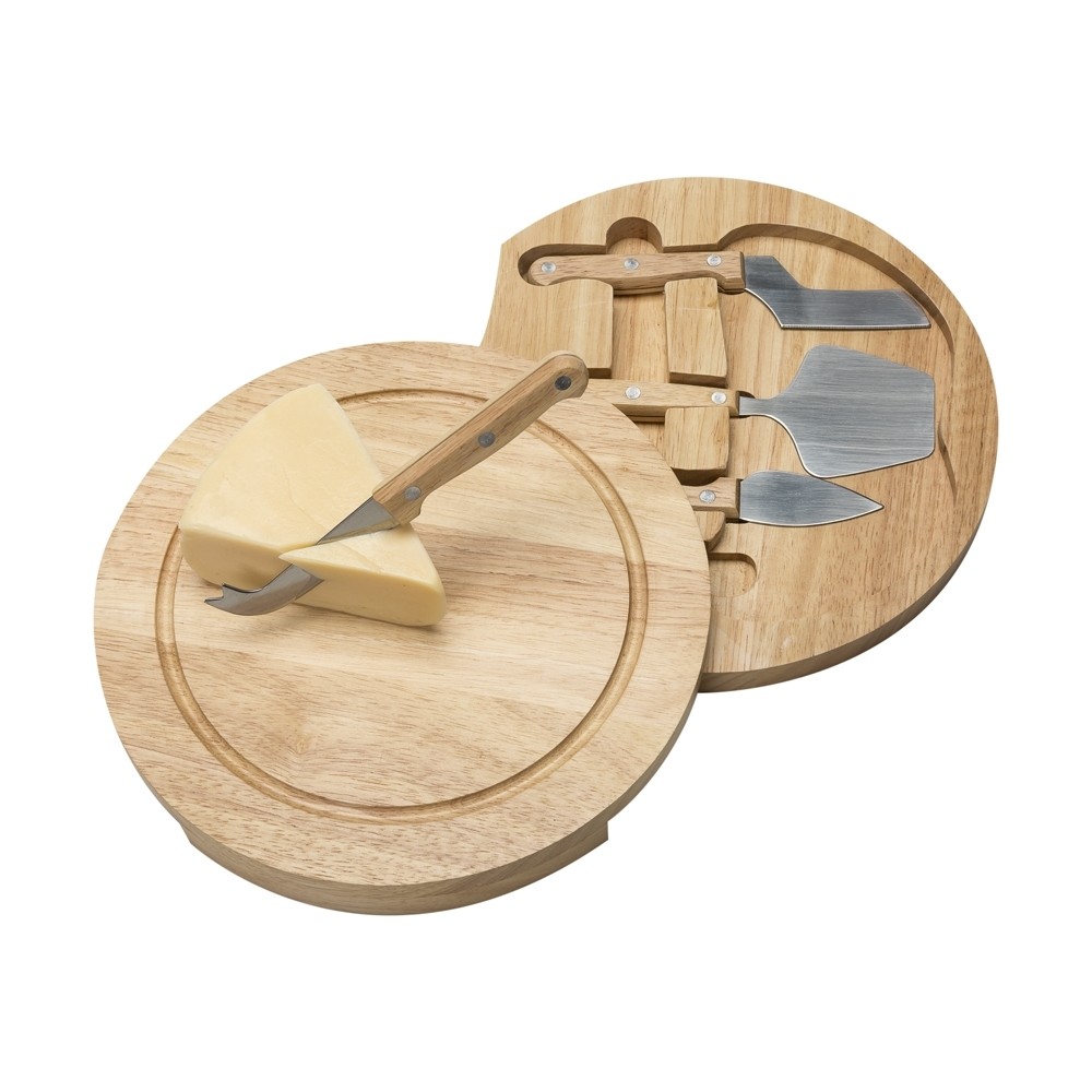 Tamanho total aproximado (CxL): Tábua 25,6 cm x 25,6 cm - Faca reta 18,5 cm x 4,5 cm – Espátula 19,2 cm x 7 cm – Faca com ponta 16,2 cm x 2,8 cm – Garfo 18,3 cm x 3,4 cm